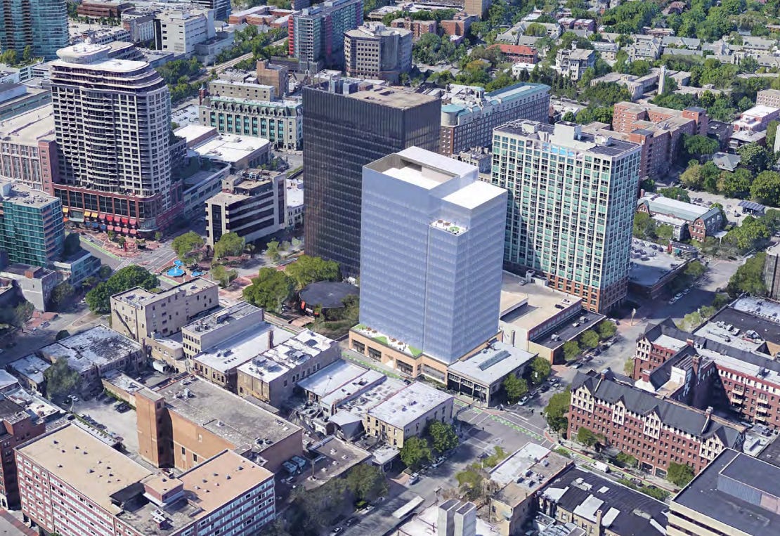 January 2020: Plan for an 18-story, 232-foot office tower at 605 Davis Street, but although approved by City Council, the project never materialized as the COVID-19 pandemic derailed office demand.