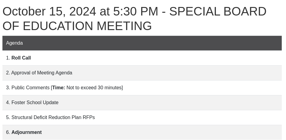 Anyway, tonight there is a District 65 Board meeting with a pretty small agenda. I donāt know the background, but it looks like they may be evaluating responses for the RFP for the Consultant to do the āStructural Deficit Reduction Plan.ā