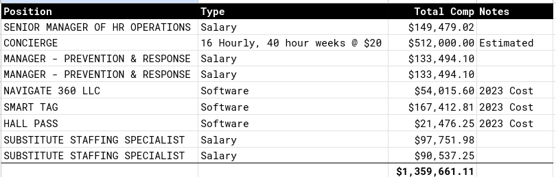 This is a very clear example where the District tacked on a million bucks in administrative headcount alone.3 Is it worth it? Hard to say - Iāve had multiple educators write to me to complain that when they request a substitute, they just donāt get one anymore, which seems like a problem.