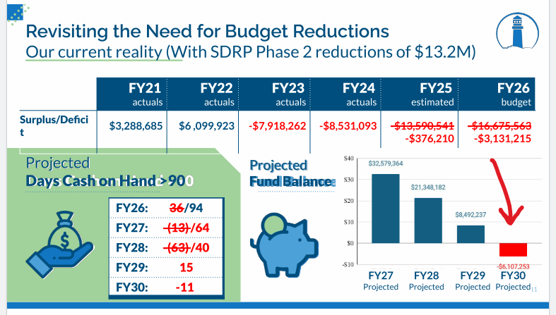 Once that number goes red, the District is out of money, taking out short term tax warrant loans, and on the path to state takeover. I lived in Detroit during the state takeover there - you don’t want a state take over - they’ll close more than three schools. There’s very little municipal bond room left, so this is it. It takes two years to close a building, there is real urgency to move quickly.