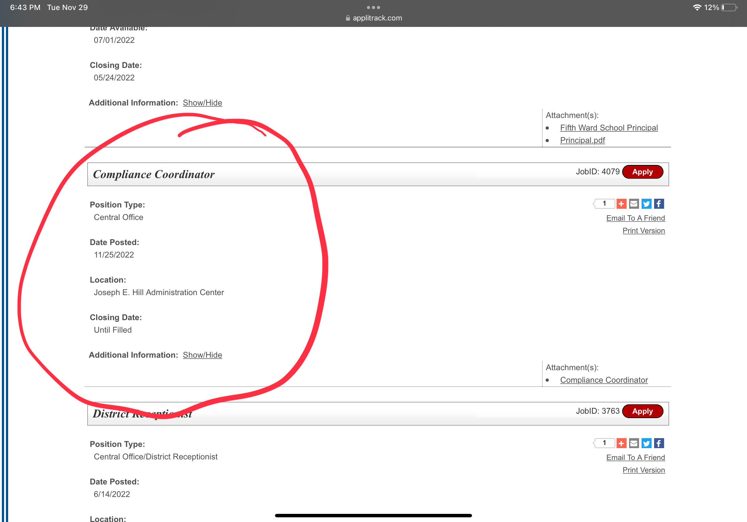 Take some solace that the fourth and fifth bullet points on the job req actually involve doing boots-on-the-ground compliance work. Given the issues the District has had over the last few months with late teacher payrolls and delayed posting of statutory information to their website, it sounds like something the district needs.