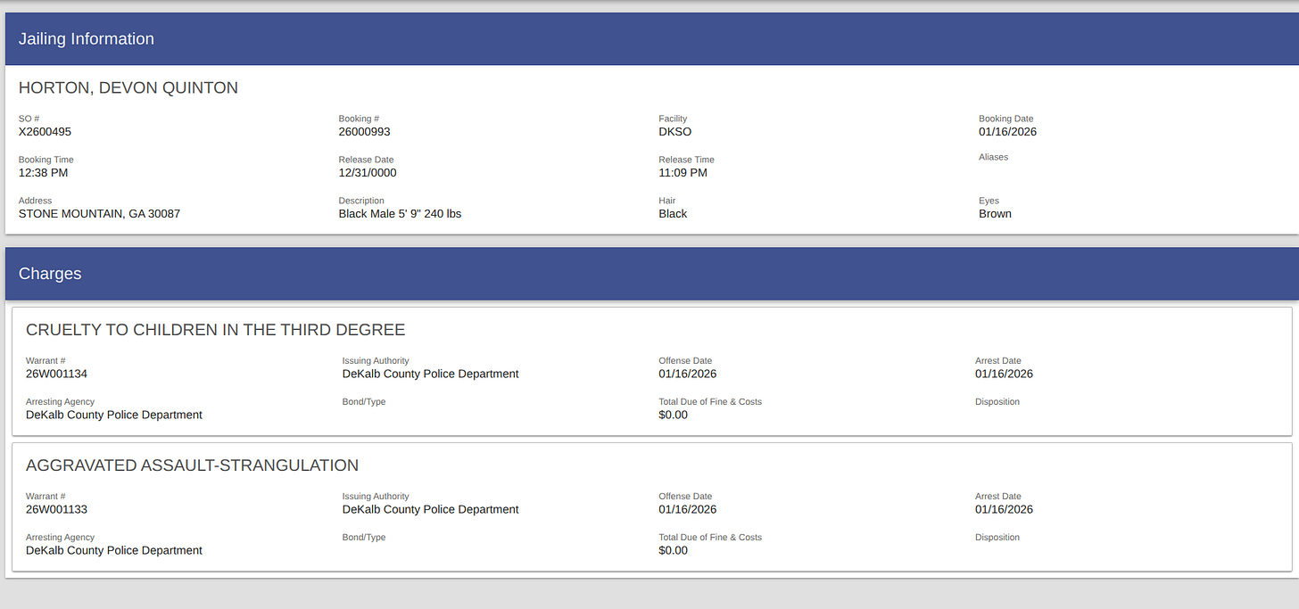 An hour ago, the Decaturish reported that former Superintendent Devon Horton was arrested in Stone Mountain, Georgia. According to the reporting and verified by County records, he was charged with two crimes:
