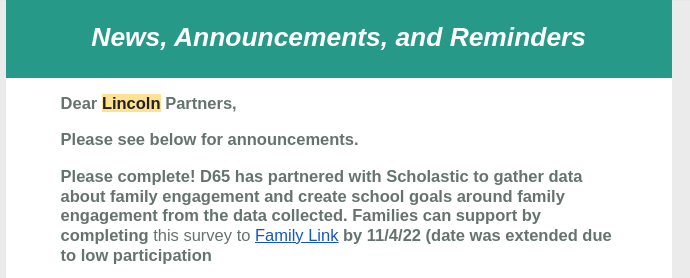 On top of that, our local elementary school has sent links to take a Scholastic "family engagement" survey, which apparently, has a low response rate.