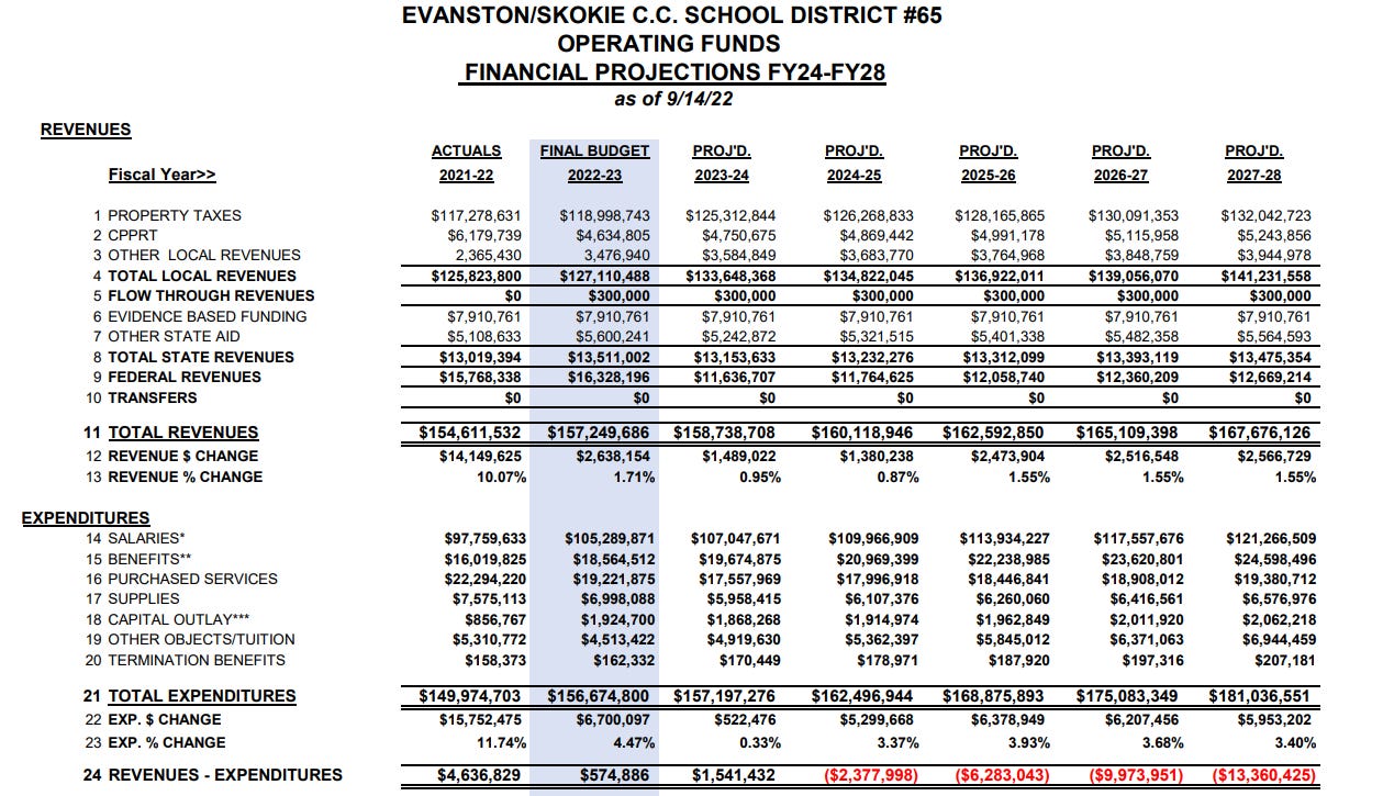 Even back then, the District was looking at shortfalls of $430,000 last year (2021-22), $2.6 million this year (2022-23), $6.7 million next, and $9.7 the year after. These deficits didn’t come to fruition, the district appears mostly deficit neutral with the budget this year. What happened?