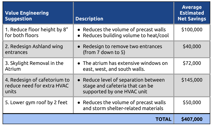 Meanwhile in Evanston, a full 30 months after the Board received funds for the lease certificate, they will be discussing “value engineering” with the Owner’s Representative. You can read the recommendations at this link or see the summary below - but it seems like the plan is essentially to reduce the height of some ceilings, remove a skylight, and optimize some of the HVAC designs. Evanston Now has some good coverage on the changes.