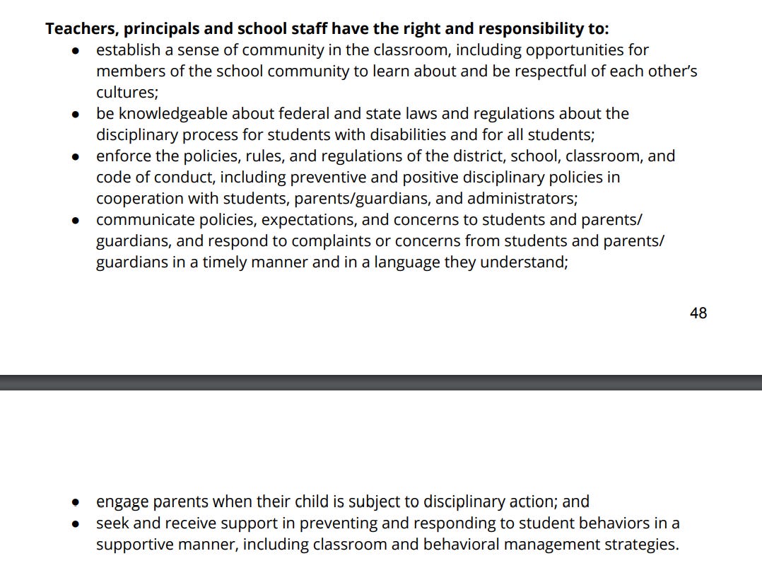 It goes on for another 34 pages (twice as long as the 2017-18 policy). The only way I can describe the current discipline policy is as a Kafkaesque maze of checklists, frameworks, classifications, hearings, and alternatives. Read it yourself - start on page 51. You have to be an educational consultant (or a grumpy substack writer) to grok the policy. I find myself wondering if this Student Handbook was even authored with students in mind .. or if the audience is their administrator peers.
