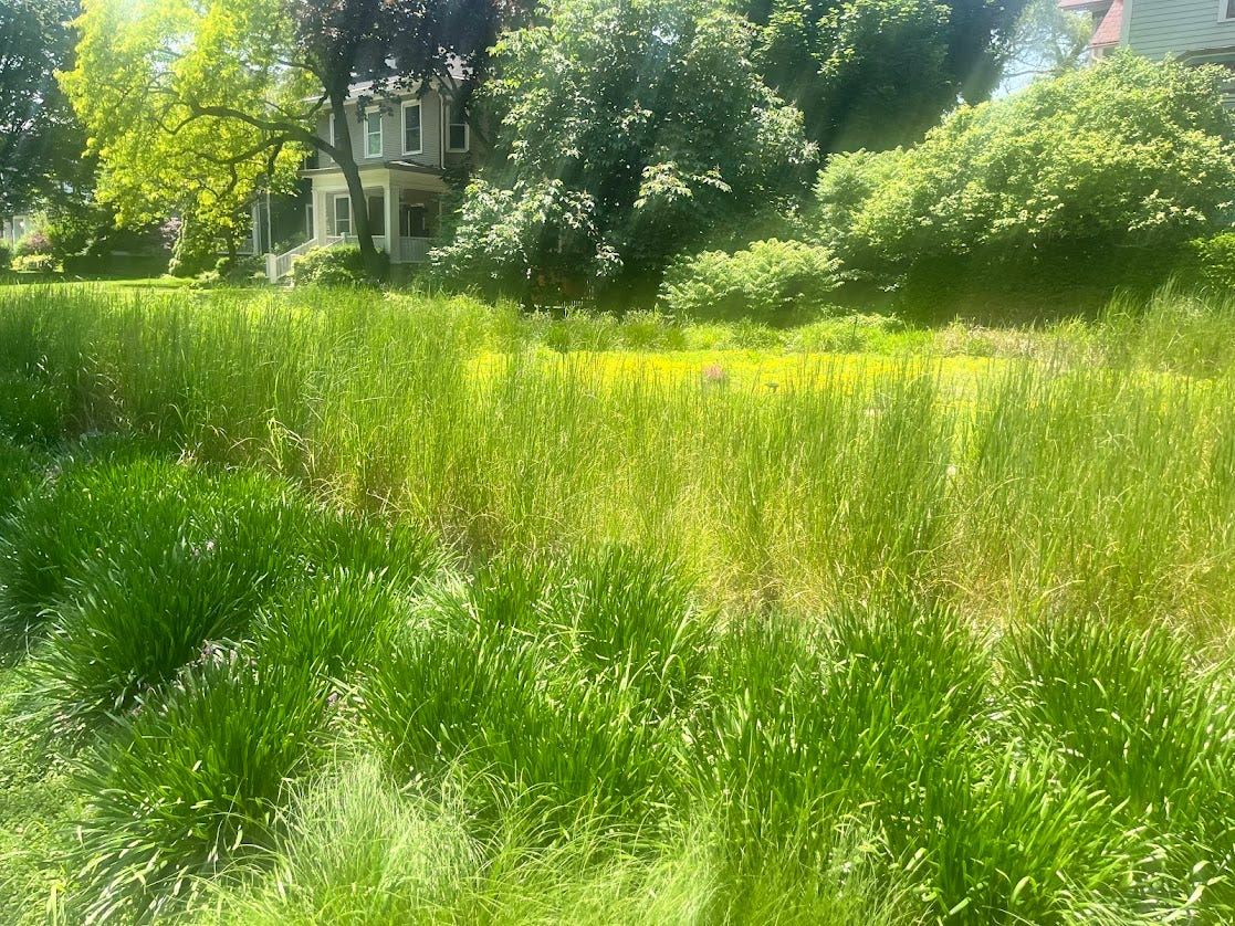 And here’s a picture of a pretty yard in front of a house on Hinman. The rains have made everything so green lately and this part of Evanston still doesn’t have cicada infestations (yet). This house always has original native plant landscaping and in the spring is quite beautiful.