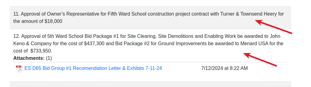2pm Special Board Meeting to Approve Bids for the Fifth Ward School