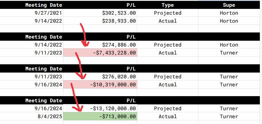 The situation is improving. The administration was able to save the Board from themselves last year by turning an unbalanced budget into a small loss. Recall that in September 2024, as the Board considered approving a large -$13m unbalanced budget, Dr. Grossi warned them of the consequences. The Board unanimously passed the bad budget anyway followed by four board members announcing they weren’t running for re-election.