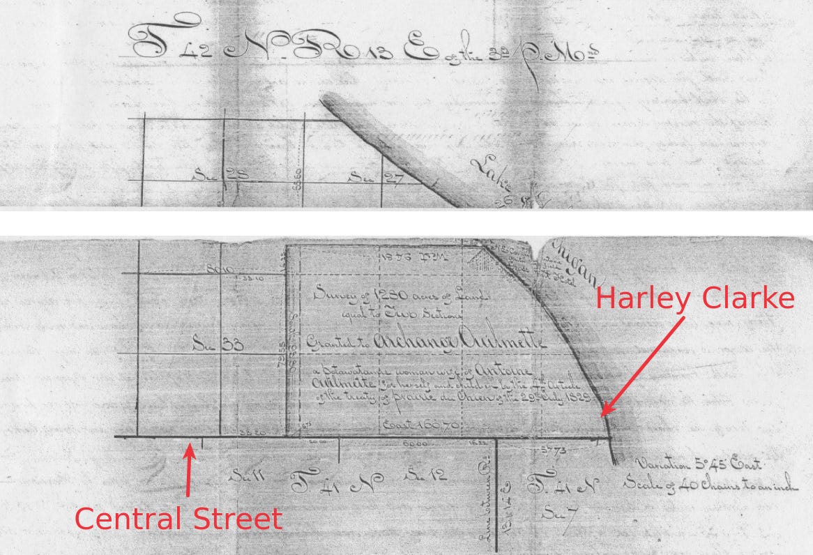I’ve made a map of the reserve granted to Archange Ouilmette, on a modern day map. It includes present-day Ryan Field, Evanston Hospital, D65’s Orrington Elementary School, Downtown Wilmette, the Baha’i Temple and on the bottom right hand corner - the site of the Harley Clarke Mansion.