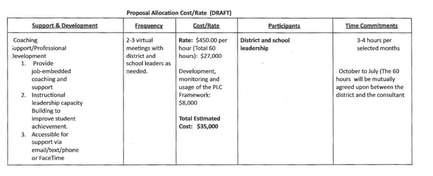 Prior to this, Ms. Dillard was Assistant Superintendent with the Jefferson County Public Schools, where Dr. Horton had previously served as Chief of Schools. During this time, Ms. Dillard consulted with District 65, you can view her contract here - she was paid $450/hour to remotely provide coaching, leadership development, and PLC services: