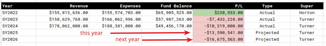 It’s possible that the cash crunch gets very tight until the August 2025 tax money comes in and plausible that they may need to take out tax anticipation warrants. It’s astonishing that over the last five years, the District went from having $36 million in reserves to living paycheck-to-paycheck.