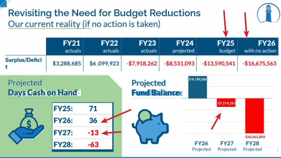 All of these proposed changes are for the 2026 fiscal year, which goes from July 1, 2025 to June 30, 2026. So most of the cuts are not going to happen until six months from now. As for this year, the original deficit projection is also -$13 million.