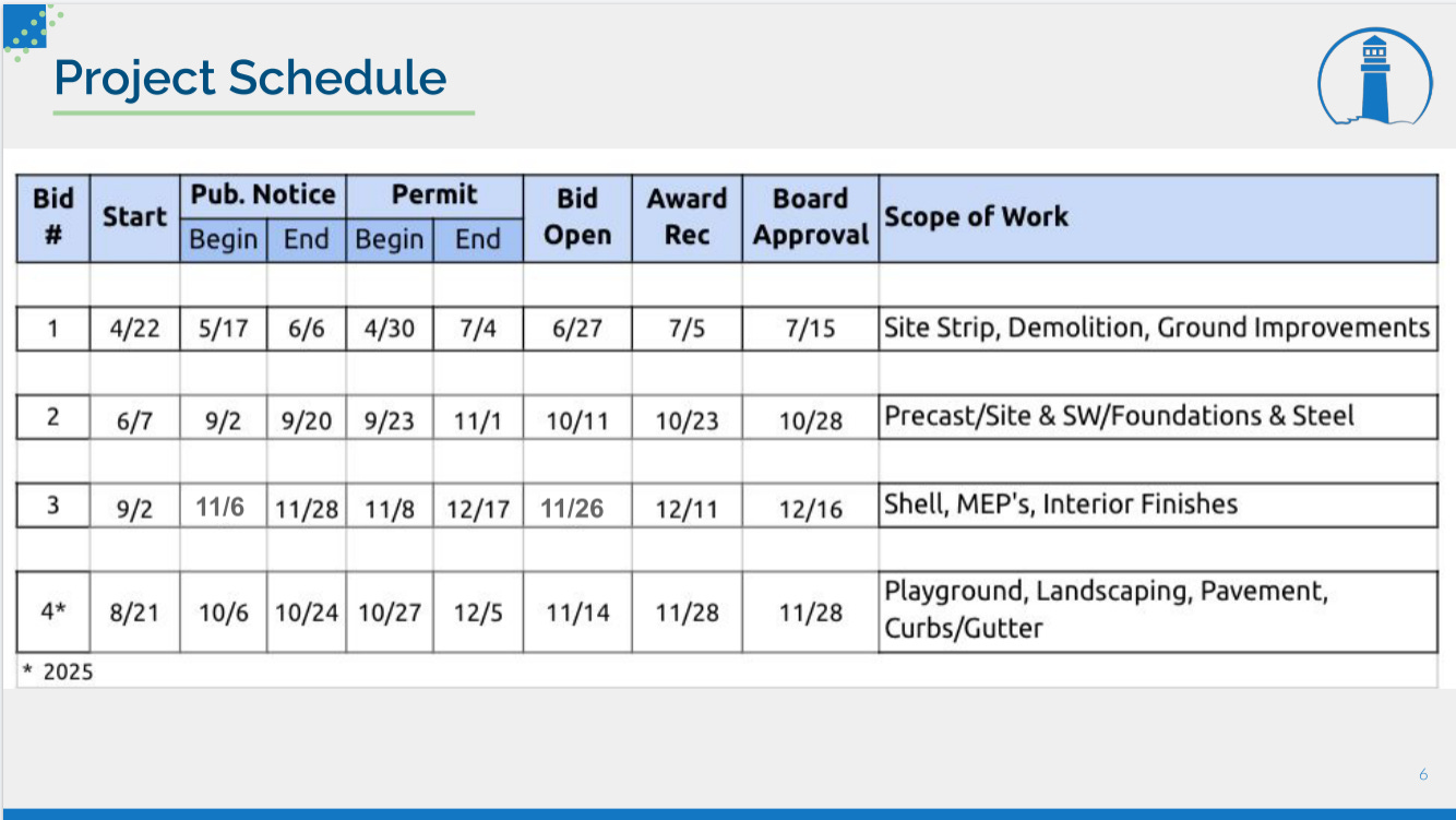 This is penultimate bid package, with the final one for playground, landscaping, and other equipment to come in later in 2025.