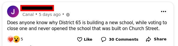 I have received multiple emails about this subject and recently a reader shared a link from the Evanston Nextdoor page.1 Most of them are along the lines of, “Why is District 65 building a new school in the fifth ward when they just built one and nobody uses it?! How wasteful!” - This is absolutely false.